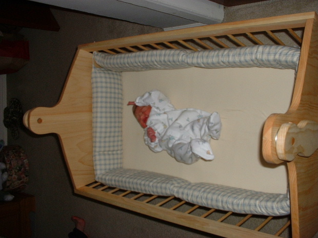 i should note that the cradle was built by rich, who apparantly was expecting triplets or is under the impression the baby will be sleeping in the cradle until she is four :)